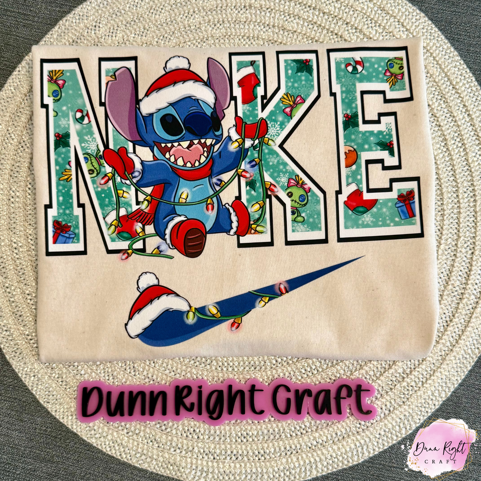 This cozy crewneck features a playful Stitch tangled up in colorful Christmas lights, spreading festive vibes and holiday humor. Perfect for Disney lovers, cozy nights, or fun family matching outfits this Christmas season!