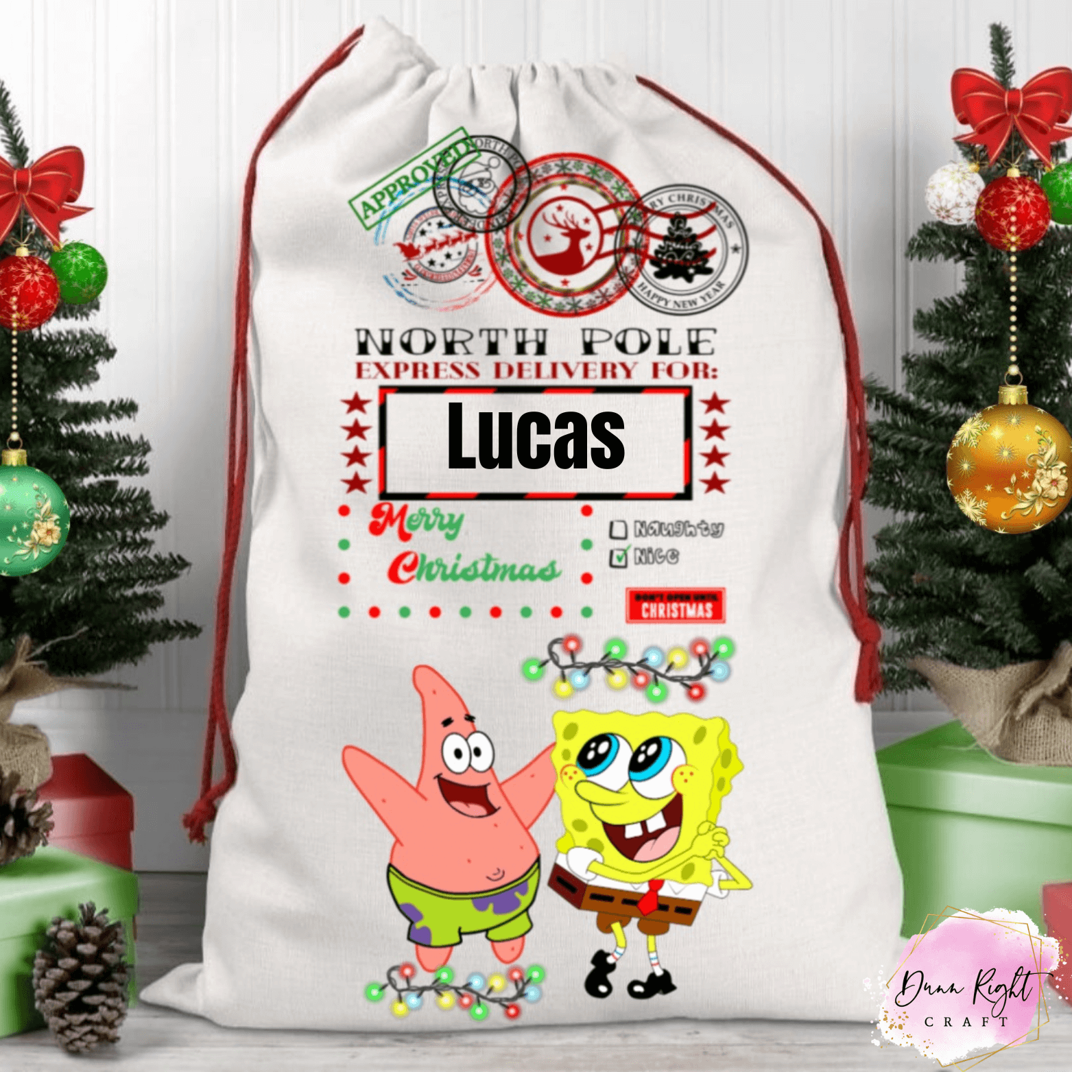 Make Christmas morning unforgettable with this fun and festive SpongeBob & Patrick North Pole Express Santa Sack! 🎄✨