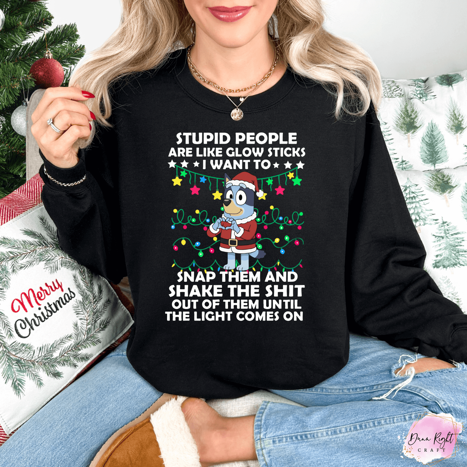 Keep the holidays bright and brutally honest with this “Stupid People Are Like Glow Sticks” Christmas Sweatshirt! 🤣