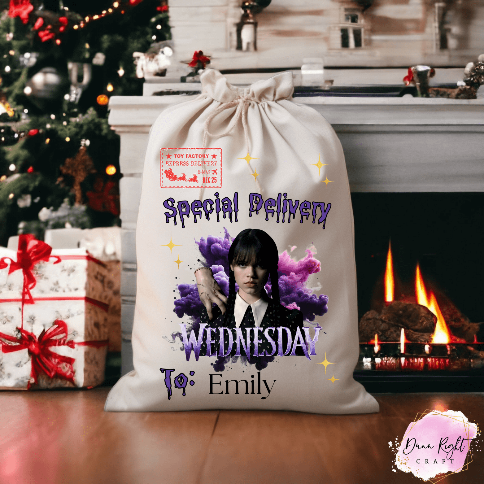 Make Christmas extra spooky and magical with our Wednesday Personalized Christmas Sack!